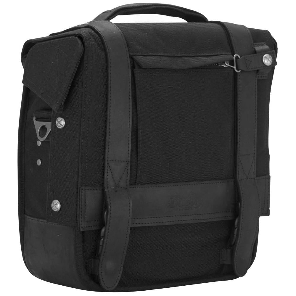 - Burly Brand's Detachable Saddlebags are available in the original Dark Oak Wet Waxed UV-treated cotton canvas or Black CORDURA® and leather paneling for support that will age and show character over time. A durable metal and polyethylene reinforced internal frame helps the bag keep shape whether it's empty or packed to the brim. The roll-top closure and Snap/Velcro® Road Shield System keeps the wind and elements out. High-quality moto-centric speed buckles and zippers with Burly embossed, metal snaps and accents as well as an "Anti-Flail Snap System" to keep everything secure. The quick release pin-lock bracket system allows the saddlebag to be easily and quickly removed to be converted into a dual purpose messenger.