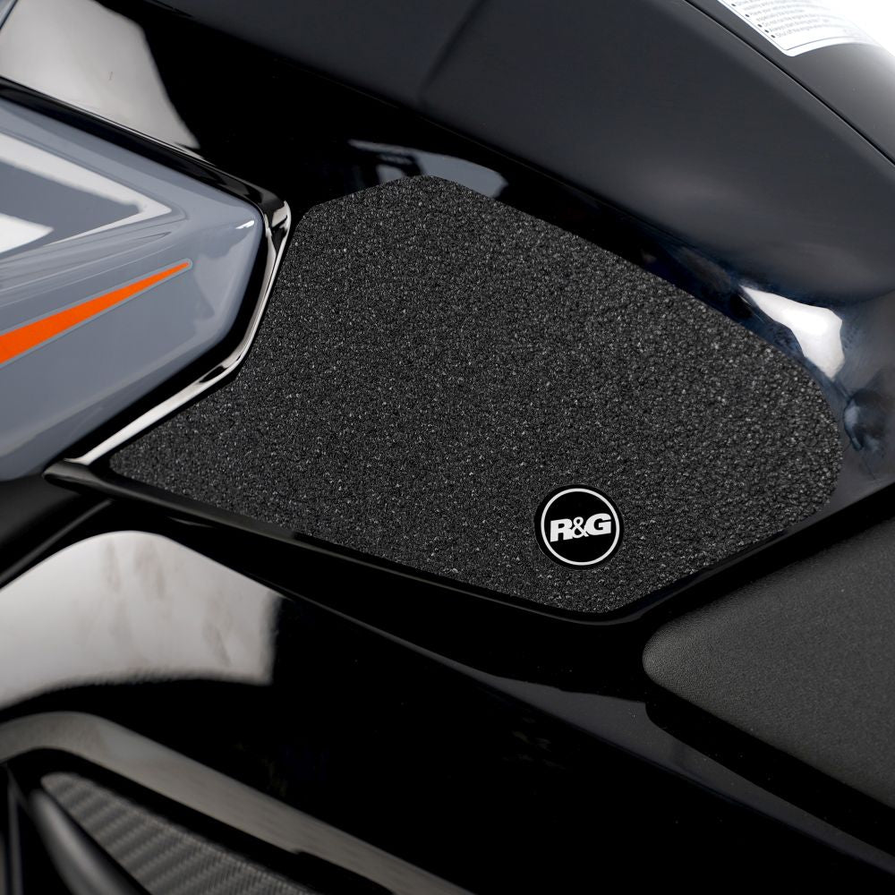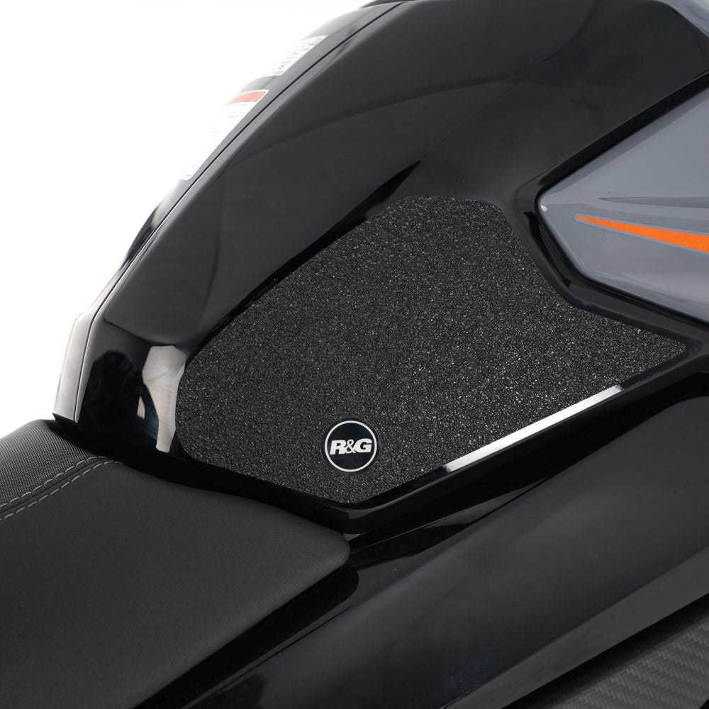 - Each R&G Tank Traction Grip kit is available in black and ultra-clear finishes to blend into your bike’s paintwork or stand out, depending on your preference.