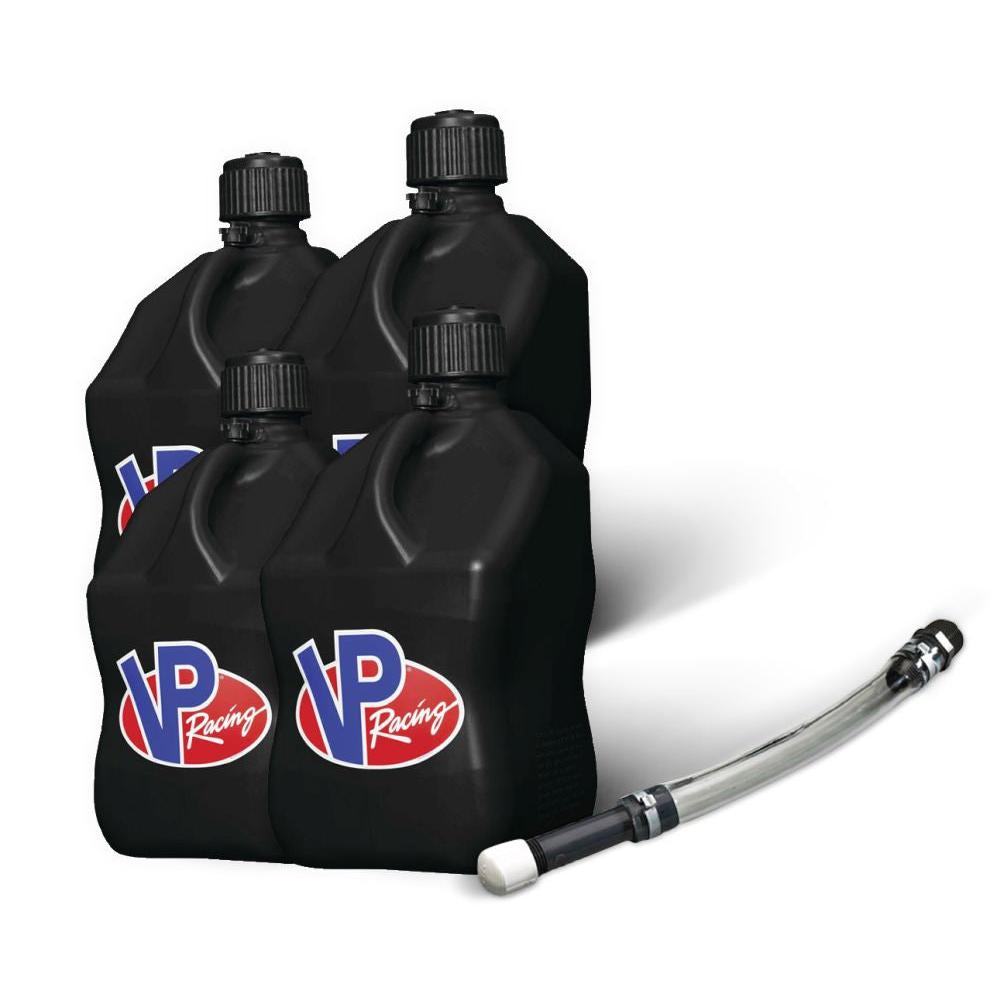 VP Racing 4 Pack Black 5.5 Gallon Square Utility Jugs + Deluxe Fill Hose