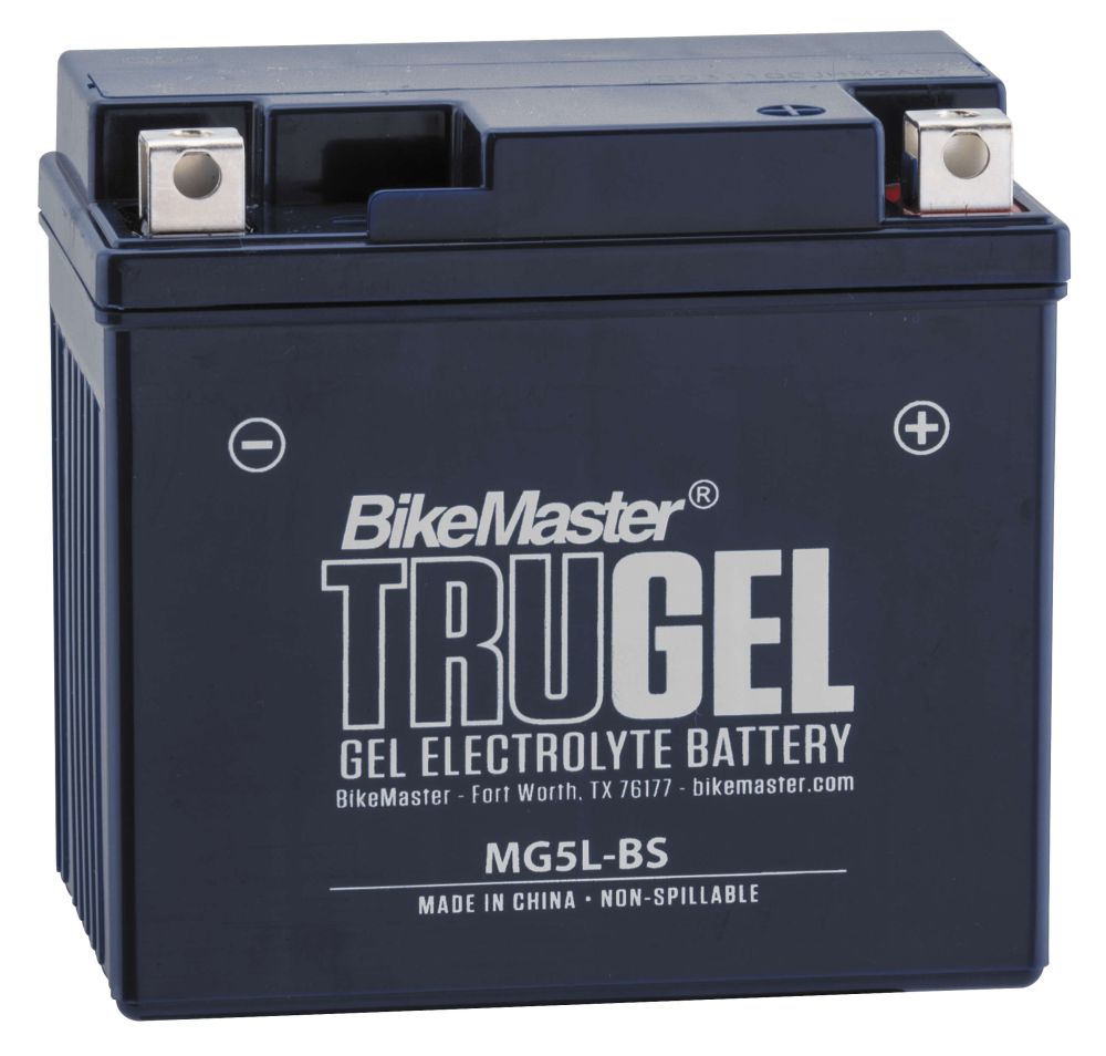 - The TruGel Battery by BikeMaster is a gel electrolyte powersports battery with a life span twice that of a wet battery. Able to resist vibration and impacts that damage regular wet batteries, it can be installed at any angle. The TruGel Battery comes with a two-year manufacturer's warranty.