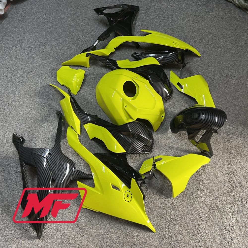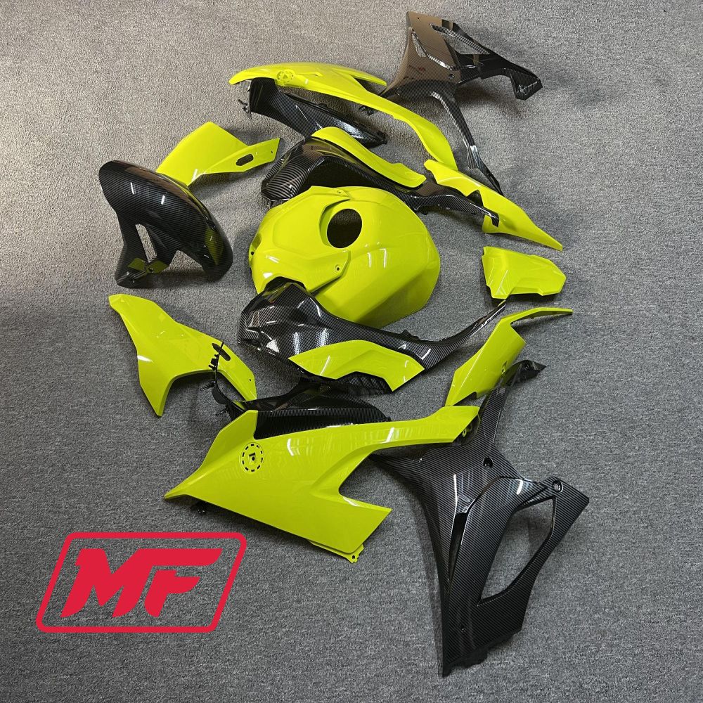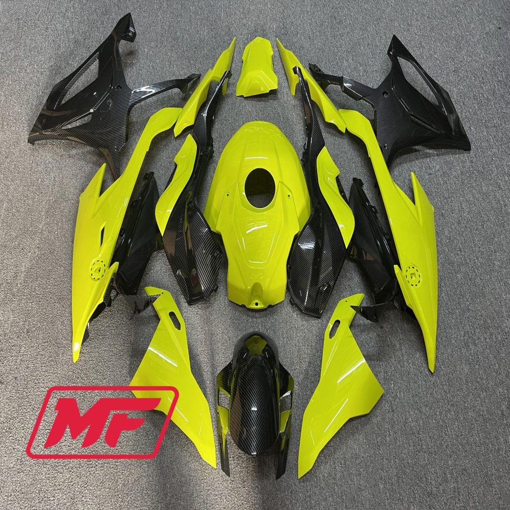 Monster Fairings Full Kit BMW S1000RR 19-22 Gloss High Viz Yellow w/ Carbon Fiber Style + Windshield + Gas Tank Cover