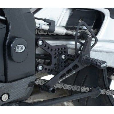 Milled out of lightweight aluminium for high strength and durability. R&G Rearsets provide a large range of adjustment to exactly position and tailor to suit every rider.