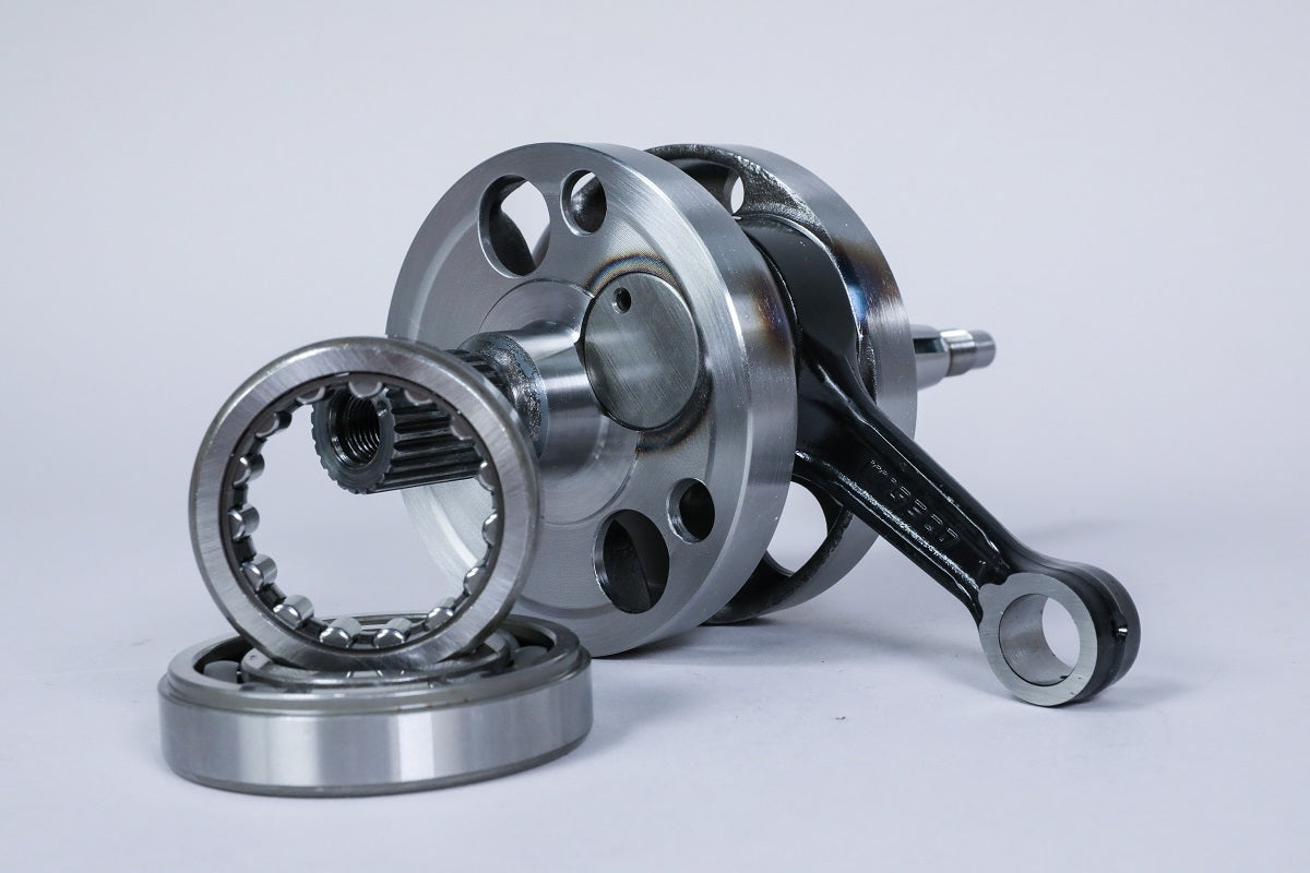 Wiseco crankshafts: Feature a double forged connecting rod, the rods maintain superior strength, durability, and dimensional consistency through improved grain flow, oil slots are located to maximize lower rod oiling and extend bearing life, coated bronze thrust washers are designed to increase oil retention and reduce stress, double-drilled small ends provide the piston pin with extra lubrication and cooling.