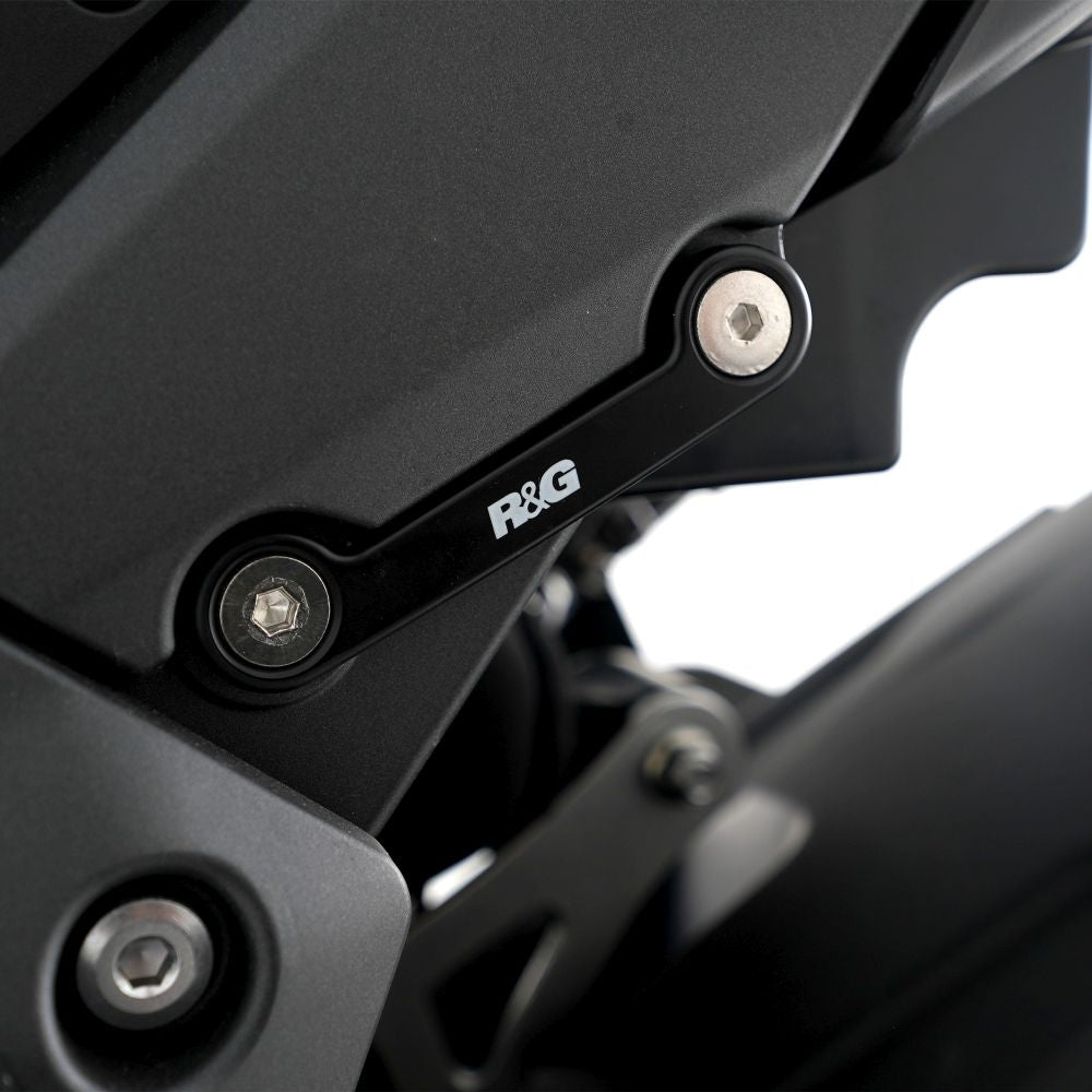 these aluminum blanking plates simply screw in, covering those otherwise exposed subframe holes left once the rear footrests have been removed keeping them free from of dirt buildup.