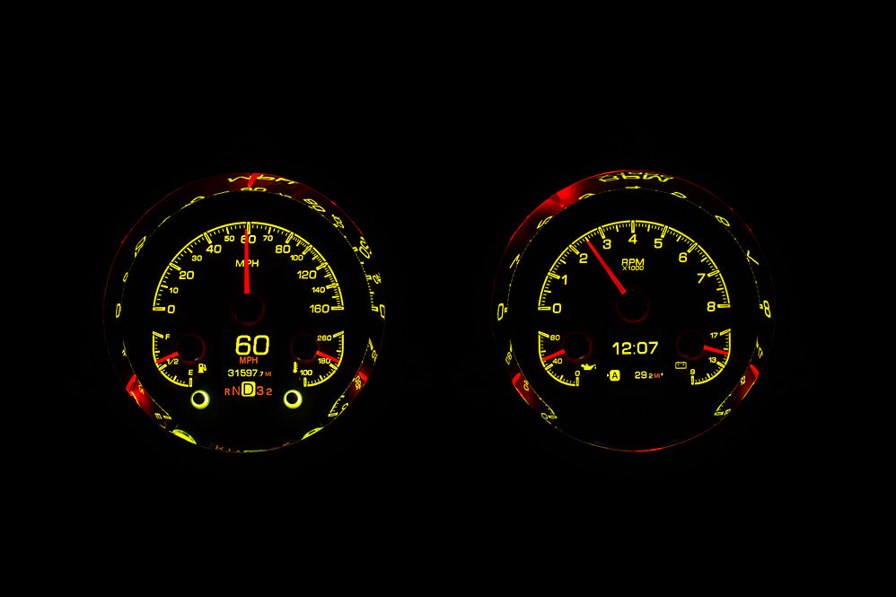 Available with your choice of black or silver alloy gauge-face styling, each HDX system allows the user to select their favorite illumination color for the gauge readings and needles, as well as the TFT message center displays. RGB LEDs are incorporated into the circuit boards for fully-adjustable display colors, allowing the user to personalize their instrument system to match nearly any vehicle theme.