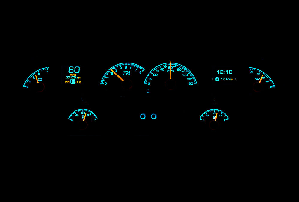 - Speedometer: 0 -160 MPH (optional metric version 0- 260 kmh)