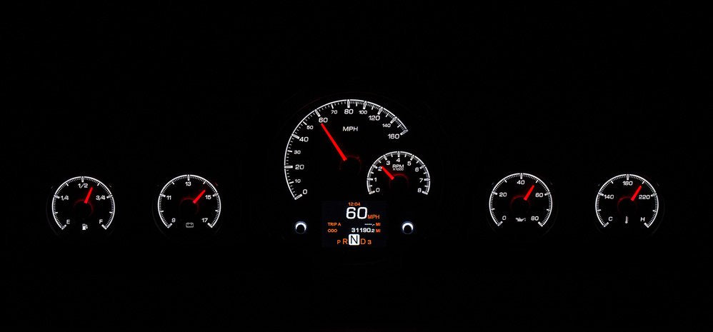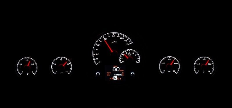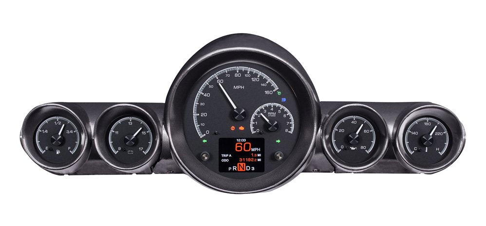 The HDX series From Dakota Digital is the latest in aftermarket automotive instrumentation technology. HDX takes personalization and usability to a whole new dimension while retaining your favorite features from the wildly popular VHX-series such as LED backlighting for the numbers, tick marks and dead-faced dash indicators (turn signals, high beam, check engine, cruise control engaged and parking brake). Illuminated needles and a lifetime warranty are still part of the deal as well. These features add up to a clean, easy to read instrument system in all conditions. Precision stepper motors provide accurate needle movement along with a full-sweep at key-on, and the needle hubs are black nickel plated spun-aluminum.