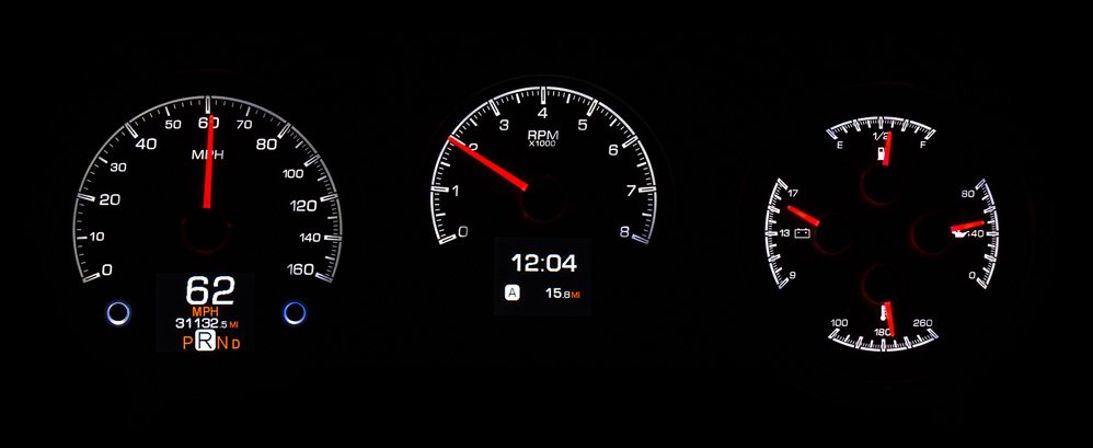 - Speedometer: 0 -160 MPH (optional metric version 0- 260 kmh)
