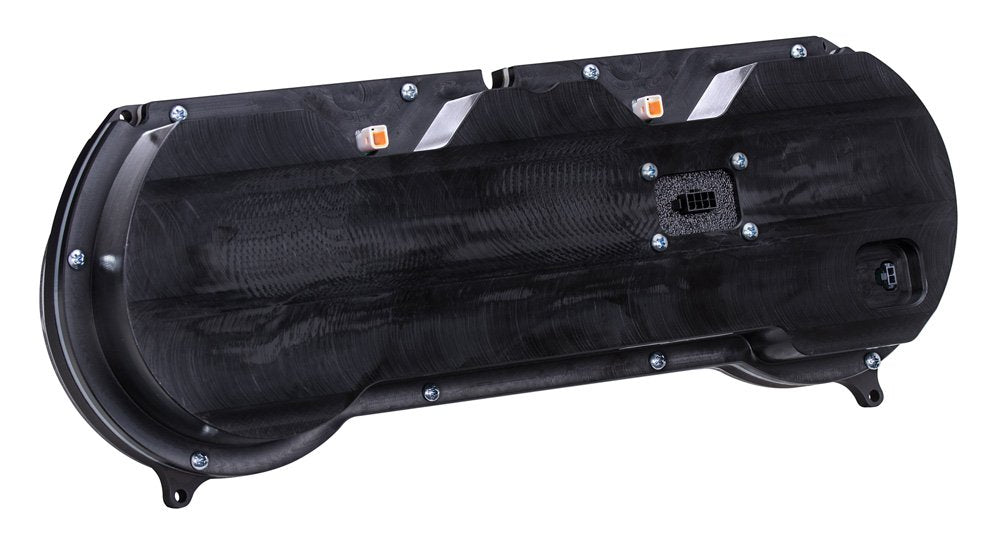 Calibration and personal settings can be manipulated with the lighted, capacitive-touch buttons integrated into each HDX system, or the available Bluetooth app for Apple and Android devices. With the instrument system dialed in, including calibration of the speedometer and fuel gauge, the system can calculate your remaining fuel range, expressed in miles to empty. Every kit is supplied with an optional buzzer for feedback each time a button is pressed. Further, the buzzer can emit a warning tone for each reading at a user-defined set point to coincide with the dead-faced, red warning lights incorporated into the gauge faces.