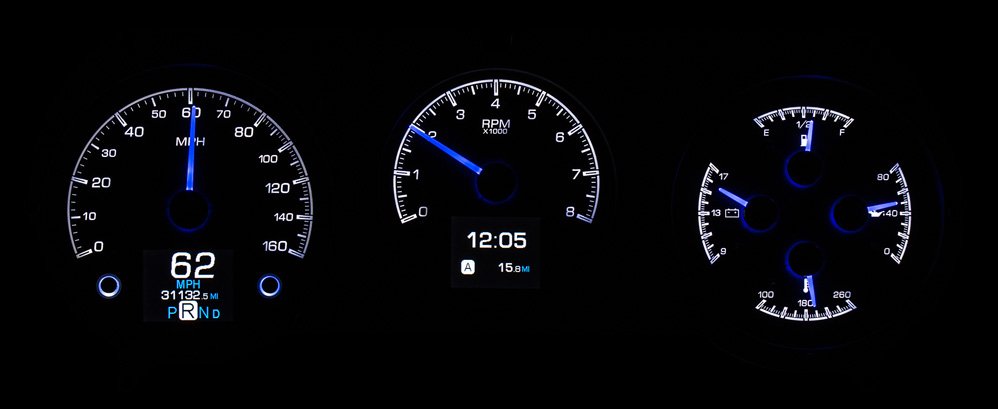 The HDX series From Dakota Digital is the latest in aftermarket automotive instrumentation technology. HDX takes personalization and usability to a whole new dimension while retaining your favorite features from the wildly popular VHX-series such as LED backlighting for the numbers, tick marks and dead-faced dash indicators (turn signals, high beam, check engine, cruise control engaged and parking brake). Illuminated needles and a lifetime warranty are still part of the deal as well. These features add up to a clean, easy to read instrument system in all conditions. Precision stepper motors provide accurate needle movement along with a full-sweep at key-on, and the needle hubs are black nickel plated spun-aluminum.