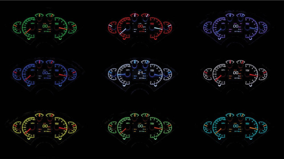 - Technology: Full LED backlighting provides a strikingly visual gauge package, with sharp contrast for ease of viewing both night and day. Full RBG backlighting allows you to create the specific color you want, with a unique daytime and nighttime theme if desired. Whether your goal is an OE look or something truly bold, the RTX Series lets you make that choice.