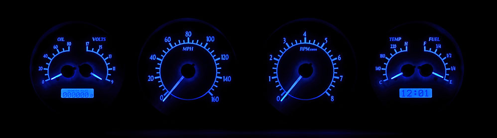 Fully lit needles, backlit faces, and highly visible LCD message centers are a few of the things that you can see which set the VHX Series apart from yesterday’s traditional approach to instrumentation. A few of the features which you don’t normally see are the micro-controlled precision stepper motors, solid state sensors for unparalleled accuracy, and user-customizable display feedback, all supported by an unrivaled limited lifetime warranty which has become the standard for Dakota Digital instrumentation systems. Completely engineered and manufactured at our facility in Sioux Falls, South Dakota, the VHX Series has completely revolutionized the instrumentation industry!*Bezel/ Trim/ Facia not included, shown for visual/presentation purposes.System uses OEM or reproduction style bezel.