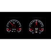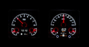 - Each analog gauge sweep contains a red LED indicator for quick notice of a warning condition (except speedometer)