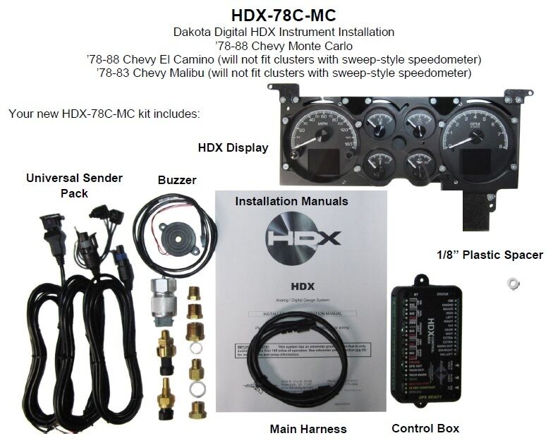 Dakota Digital 1978-1987 Chevrolet Monte Carlo/Malibu/El Camino HDX Analog Gauge kit HDX-78C-MC
