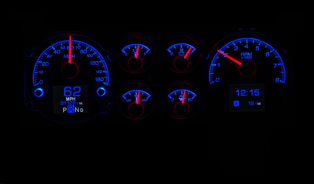 - Technology: Full LED backlighting provides a strikingly visual gauge package, with sharp contrast for ease of viewing both night and day. Full RBG backlighting allows you to create the specific color you want, with a unique daytime and nighttime theme if desired. Whether your goal is an OE look or something truly bold, the RTX Series lets you make that choice.