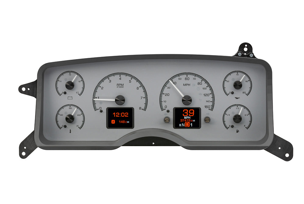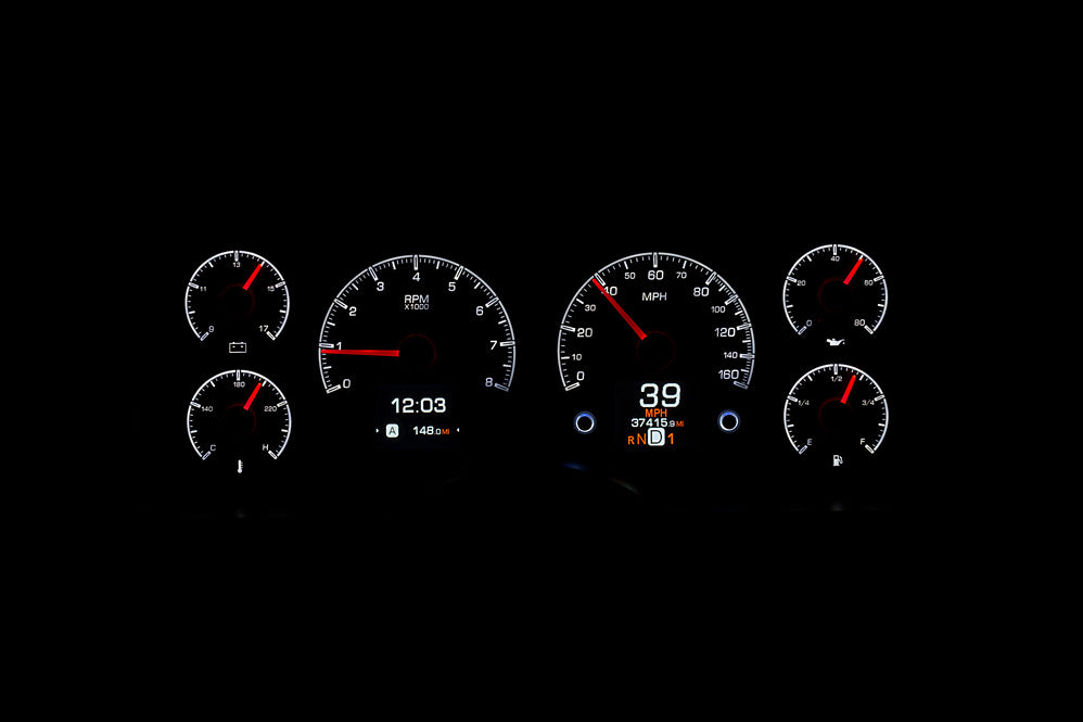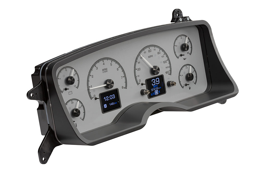 The HDX series From Dakota Digital is the latest in aftermarket automotive instrumentation technology. HDX takes personalization and usability to a whole new dimension while retaining your favorite features from the wildly popular VHX-series such as LED backlighting for the numbers, tick marks and dead-faced dash indicators (turn signals, high beam, check engine, cruise control engaged and parking brake). Illuminated needles and a lifetime warranty are still part of the deal as well. These features add up to a clean, easy to read instrument system in all conditions. Precision stepper motors provide accurate needle movement along with a full-sweep at key-on, and the needle hubs are black nickel plated spun-aluminum.