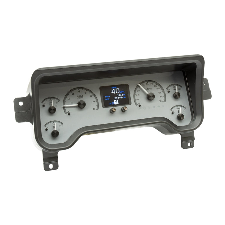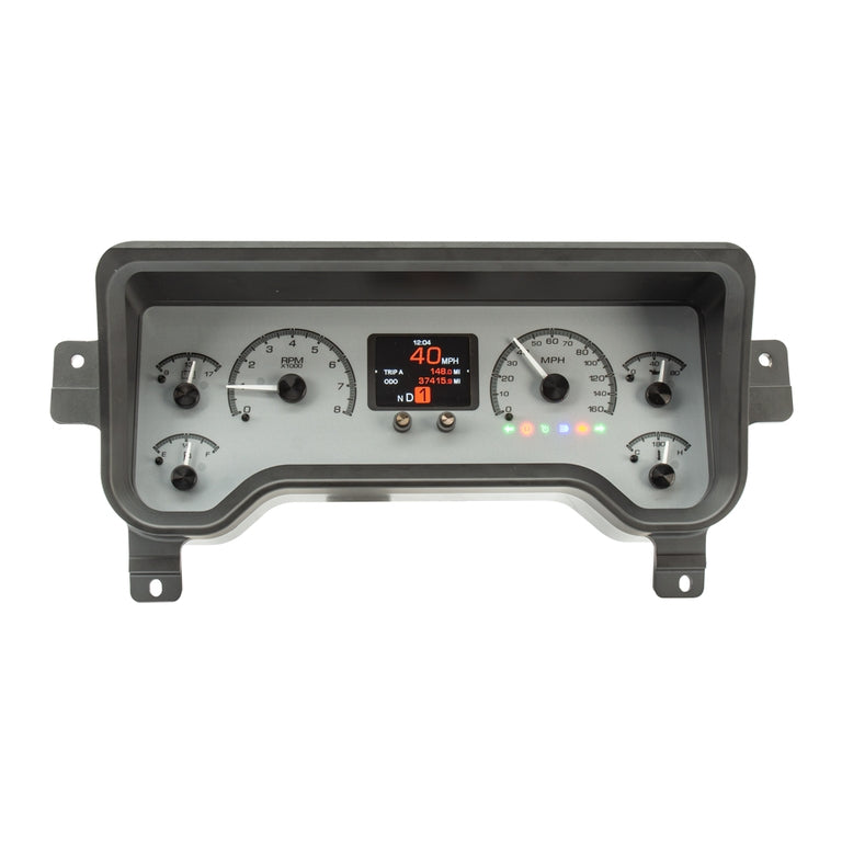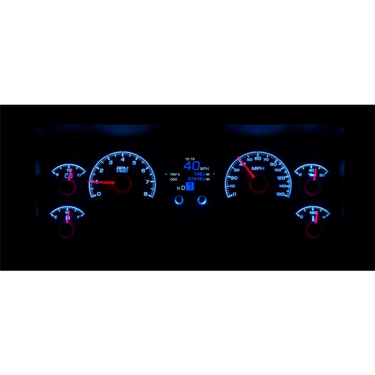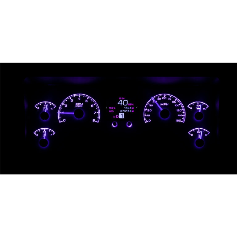 The HDX series From Dakota Digital is the latest in aftermarket automotive instrumentation technology. HDX takes personalization and usability to a whole new dimension while retaining your favorite features from the wildly popular VHX-series such as LED backlighting for the numbers, tick marks and dead-faced dash indicators (turn signals, high beam, check engine, cruise control engaged and parking brake). Illuminated needles and a lifetime warranty are still part of the deal as well. These features add up to a clean, easy to read instrument system in all conditions. Precision stepper motors provide accurate needle movement along with a full-sweep at key-on, and the needle hubs are black nickel plated spun-aluminum.