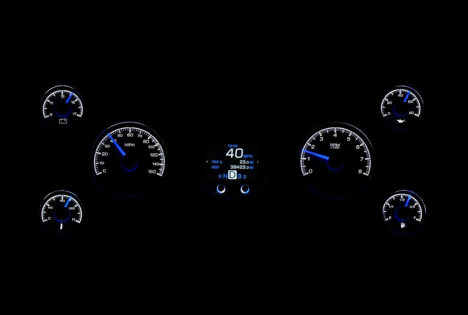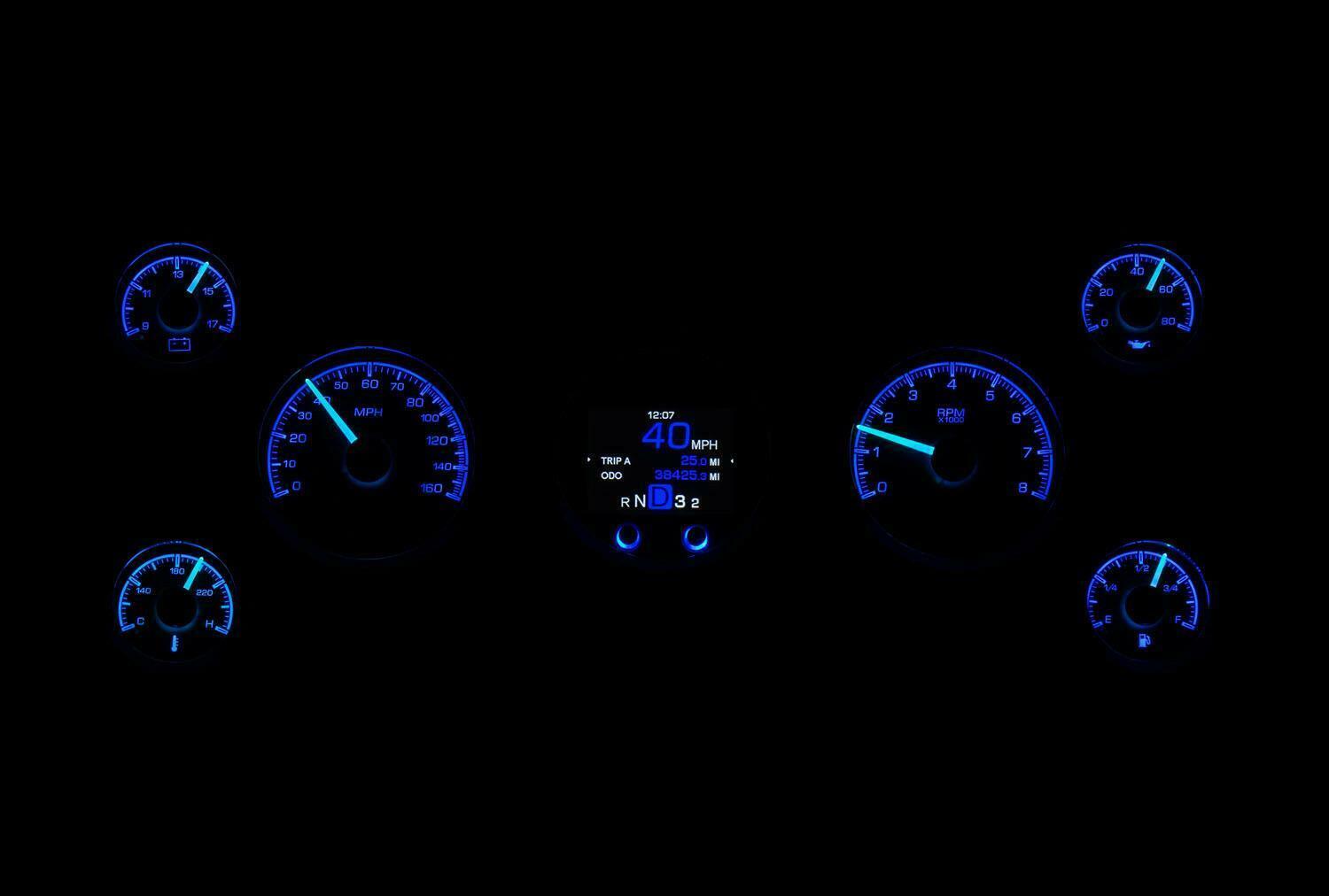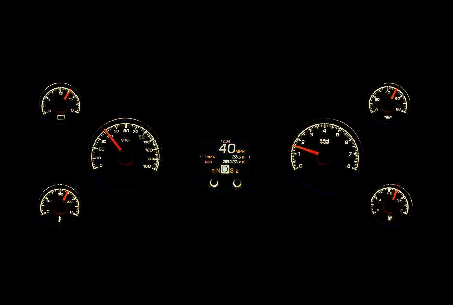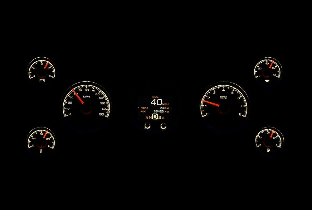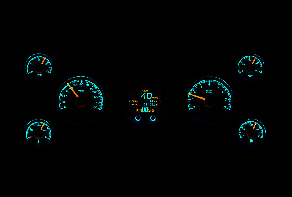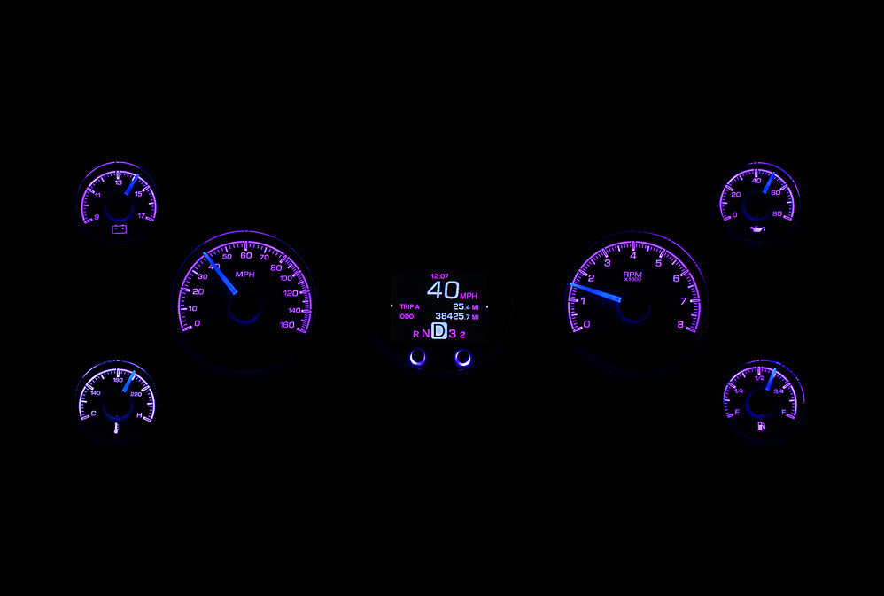 The HDX series From Dakota Digital is the latest in aftermarket automotive instrumentation technology. HDX takes personalization and usability to a whole new dimension while retaining your favorite features from the wildly popular VHX-series such as LED backlighting for the numbers, tick marks and dead-faced dash indicators (turn signals, high beam, check engine, cruise control engaged and parking brake). Illuminated needles and a lifetime warranty are still part of the deal as well. These features add up to a clean, easy to read instrument system in all conditions. Precision stepper motors provide accurate needle movement along with a full-sweep at key-on, and the needle hubs are black nickel plated spun-aluminum.