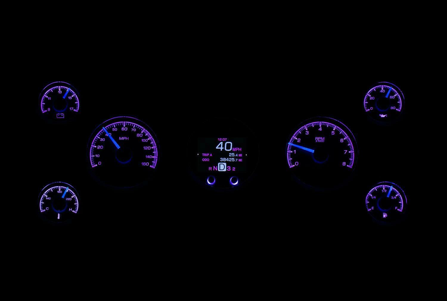 - Speedometer: 0 -160 MPH (optional metric version 0- 260 kmh)