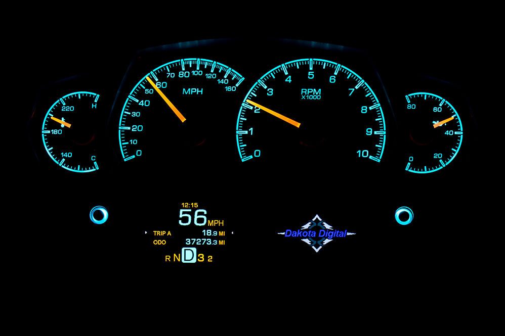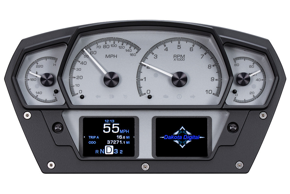 The HDX series From Dakota Digital is the latest in aftermarket automotive instrumentation technology. HDX takes personalization and usability to a whole new dimension while retaining your favorite features from the wildly popular VHX-series such as LED backlighting for the numbers, tick marks and dead-faced dash indicators (turn signals, high beam, check engine, cruise control engaged and parking brake). Illuminated needles and a lifetime warranty are still part of the deal as well. These features add up to a clean, easy to read instrument system in all conditions. Precision stepper motors provide accurate needle movement along with a full-sweep at key-on, and the needle hubs are black nickel plated spun-aluminum.