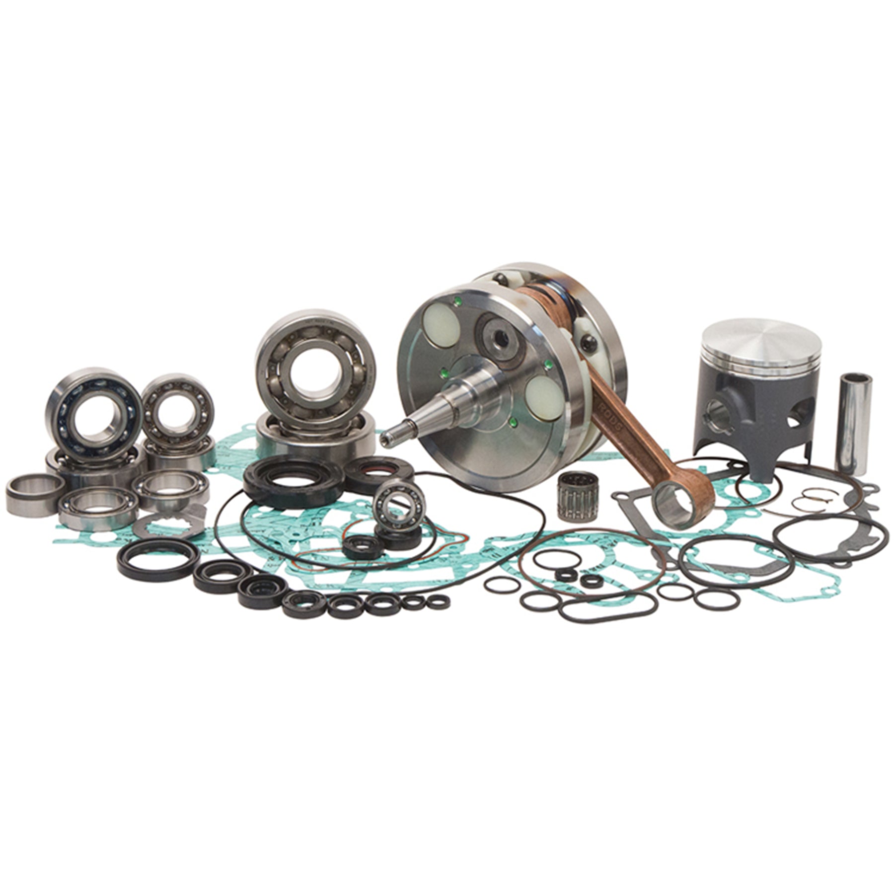 Includes: Crankshaft, piston kit, complete engine gasket kit with oil seals, main bearings and seals, water pump rebuild kit, transmission bearings, countershaft bushing/seal kit, wrist pin bearing, cam chain and counter balancer bearings when applicable