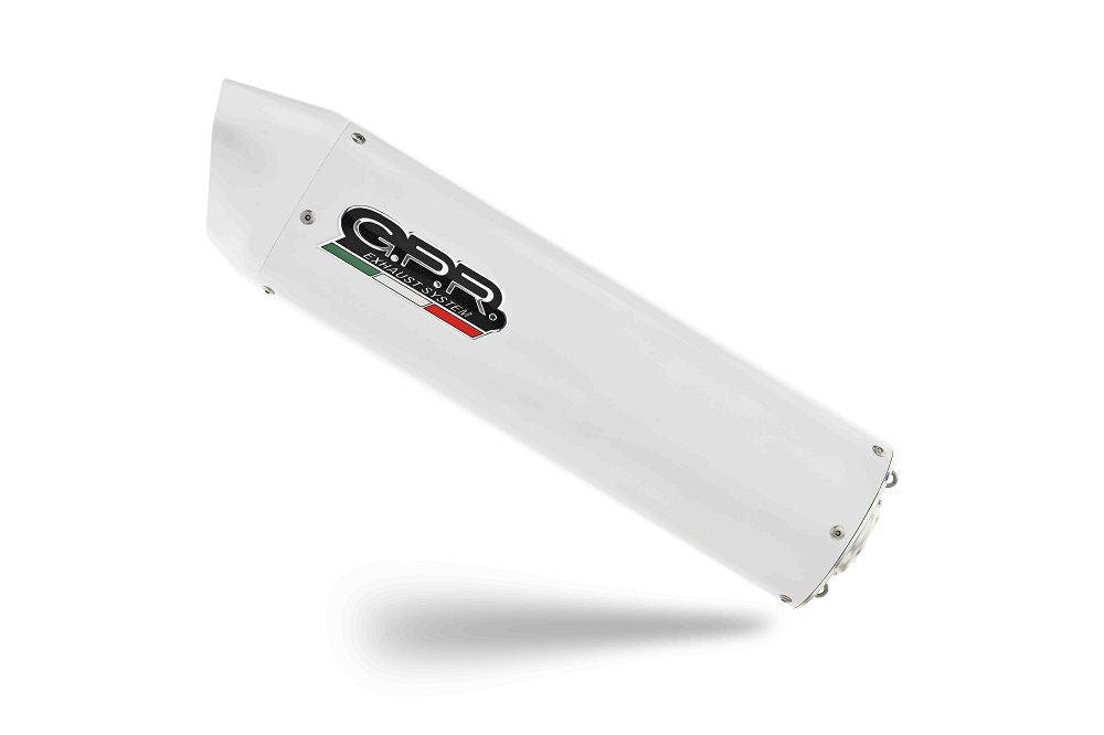 This kit includes the specific link pipe or half-manifold with specific appropriate brackets and accessories. This allows for installation without any structural modifications.GPR's ALBUS silencer series has an aluminum body and CNC-machined Avional caps. The exhaust has a ceramic treatment, that can withstand high temperatures. It has an elliptical shape with measurements of 3.5 inches x 4.7 inches (90 x 120 MM).