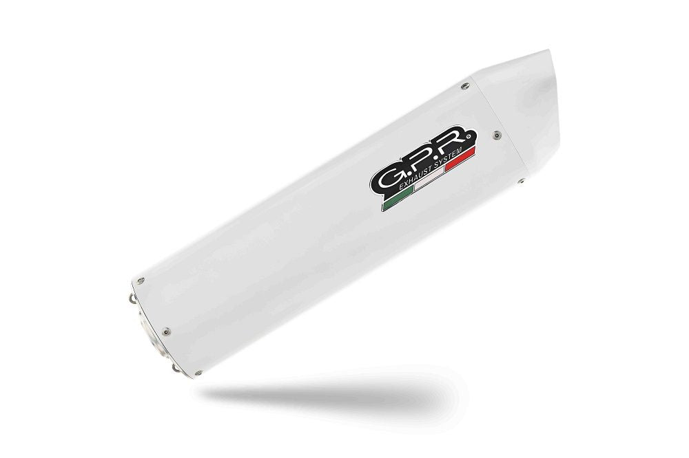 This kit includes the specific link pipe or half-manifold with specific appropriate brackets and accessories. This allows for installation without any structural modifications.GPR's ALBUS silencer series has an aluminum body and CNC-machined Avional caps. The exhaust has a ceramic treatment, that can withstand high temperatures. It has an elliptical shape with measurements of 3.5 inches x 4.7 inches (90 x 120 MM).
