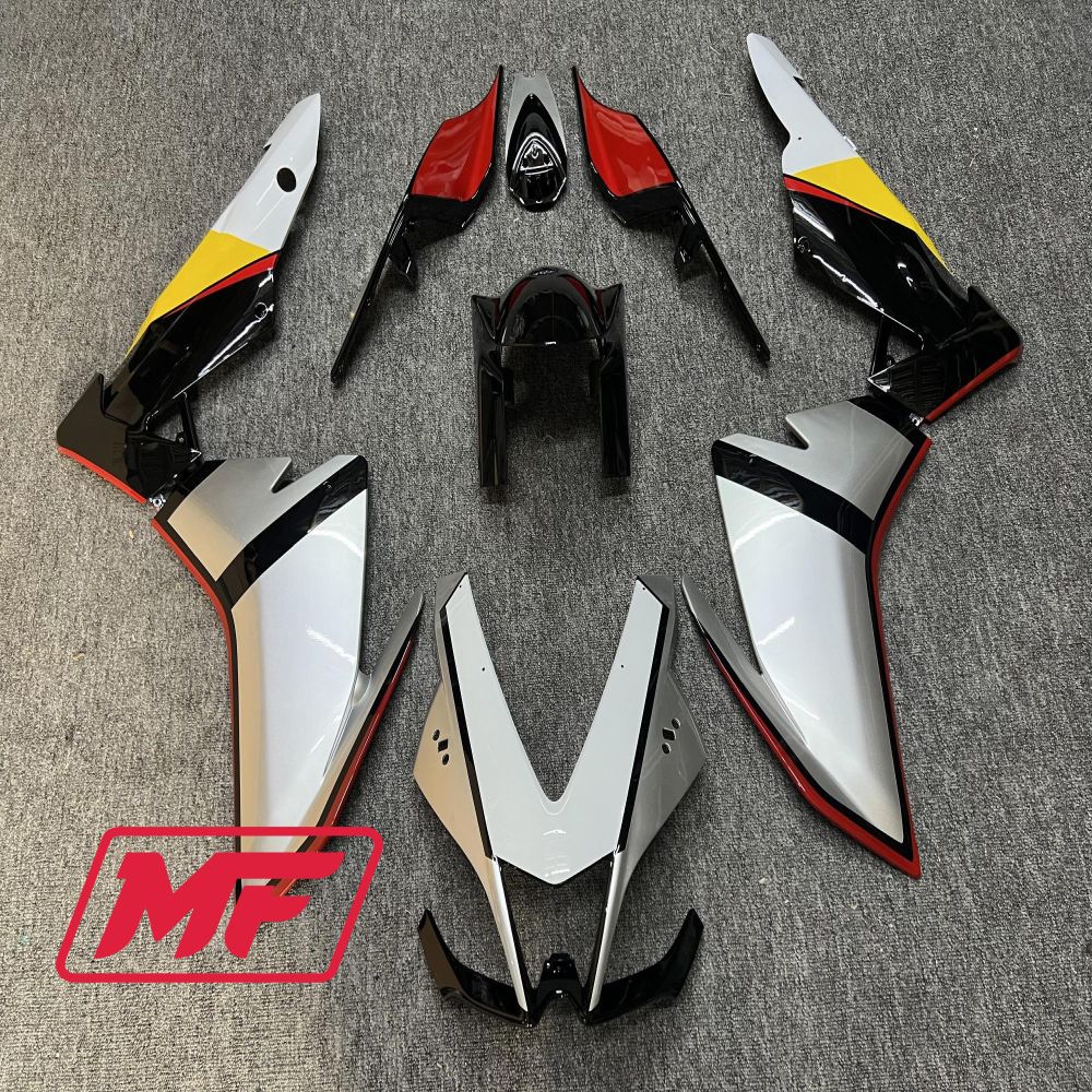 Monster Fairings Full Kit Aprilia RSV4 1000 10-15 Silver Pirelli W/ Red + Windshield + Gas Tank Cover