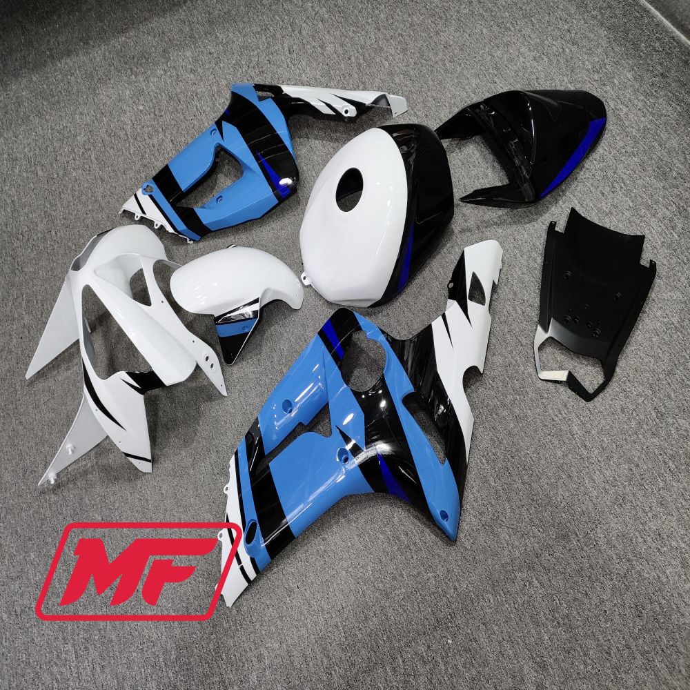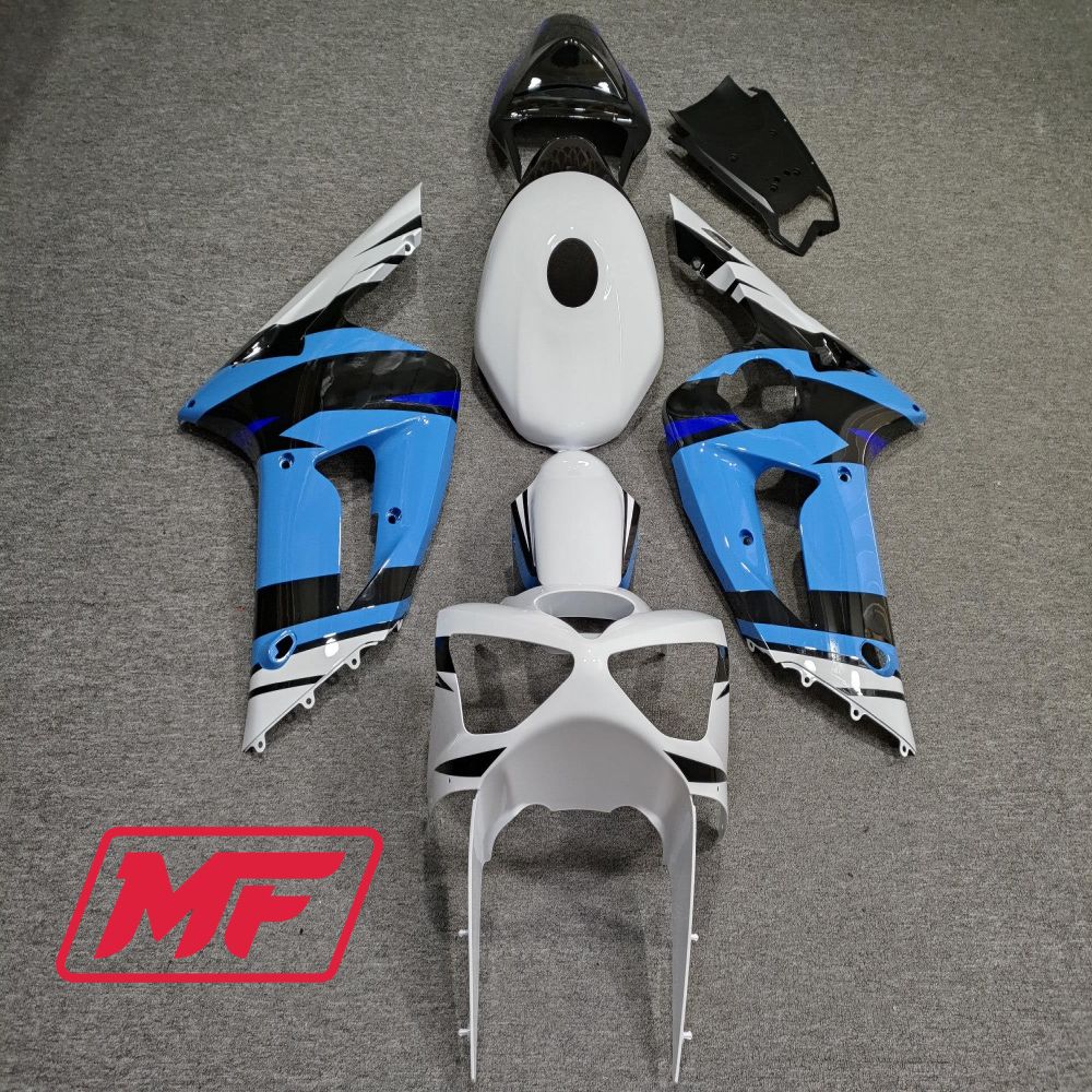 Monster Fairings Full Kit Kawasaki ZX-6R 03-04 Gloss Blue and White + Windshield + Gas Tank Cover