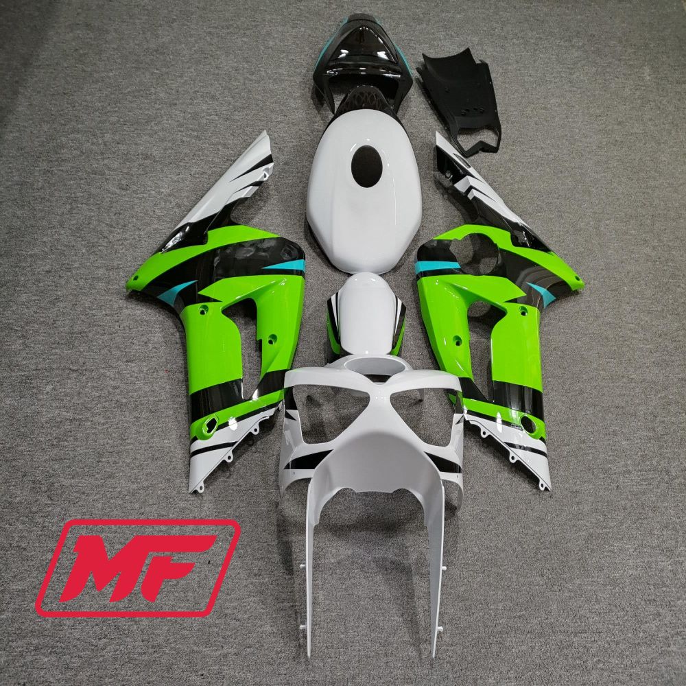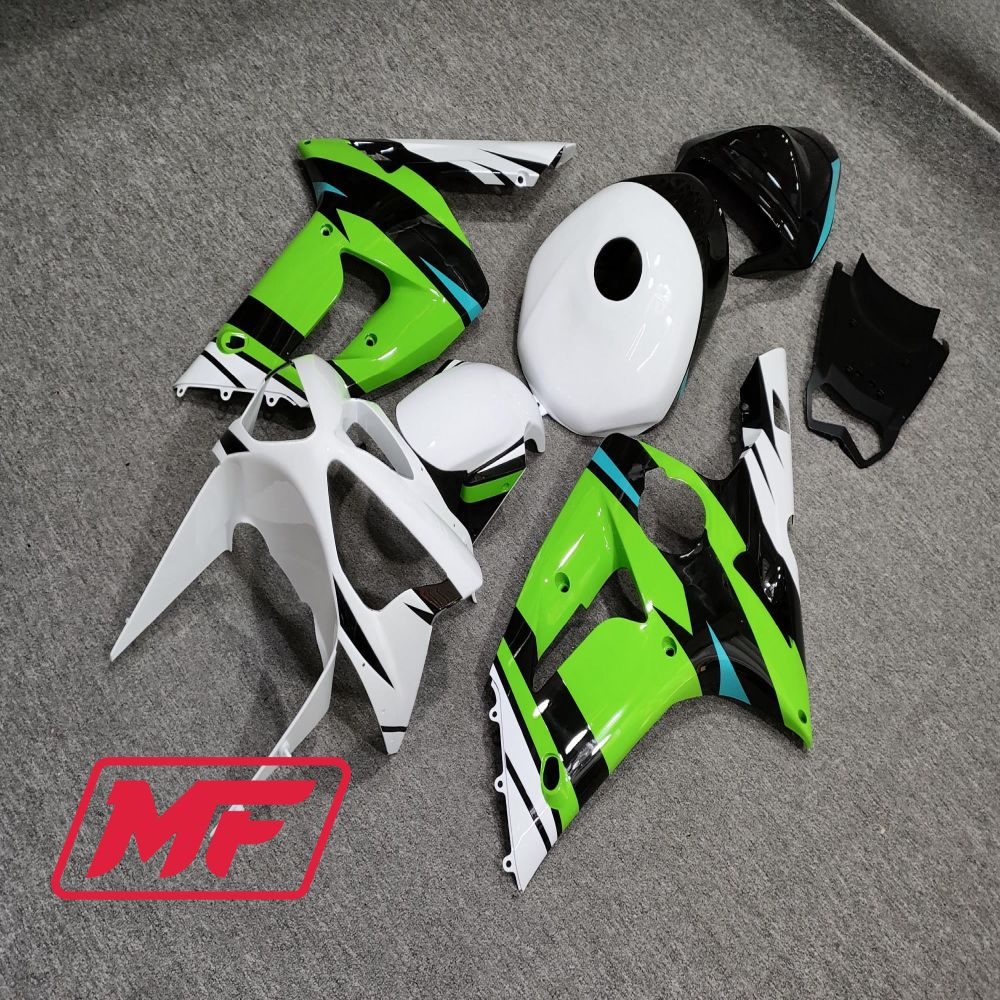 Monster Fairings Full Kit Kawasaki ZX-6R 03-04 Gloss Green and White + Windshield + Gas Tank Cover
