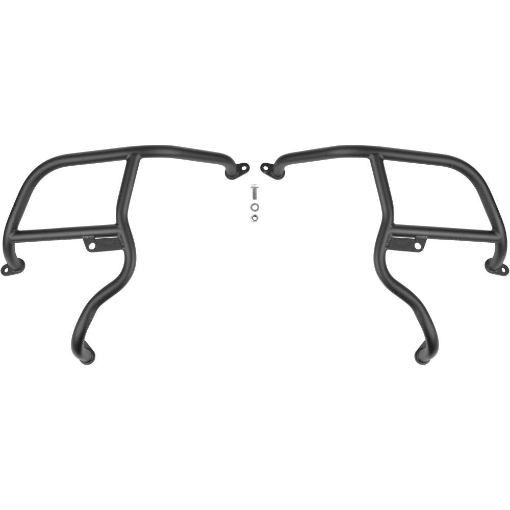 - The Adventure Side Guards are tig-welded using 1", 13-gauge carbon steel that's e-coated inside and out to prevent rust and corrosion, then finished off with a fine black powder coating for tough, long lasting protection. Integrated top brackets on each guard allow the rider to mount accessory lights, video cameras or whatever they can imagine.