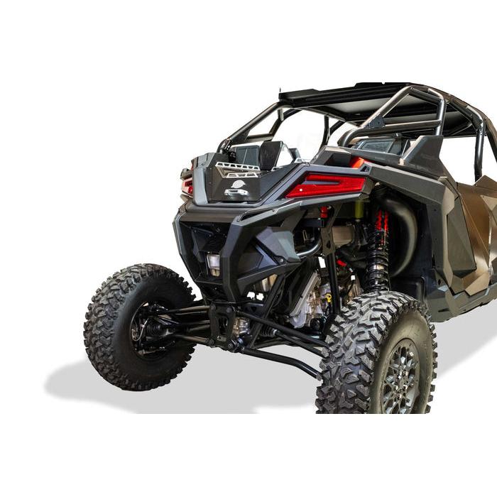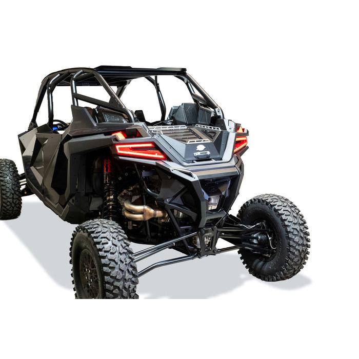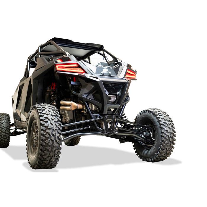The Volt Series Rear Bumper for the 2020+ Polaris RZR Pro R provides protection and style to the rear of your side by side. The modern steel design helps shield the tail lights and chassis from impact. The bumper is finished in a hammer black powder coat, and the lightweight aluminum skid plate is finished in a satin black powder coat. The Volt Series Rear Bumper features an easy bolt-on installation.