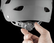 Construction: High Impact ABS Shell with soft and snug EVA neoprene-like liner. 17 vents, easily washable, quick release chin-strap and hand dial sizing system.
