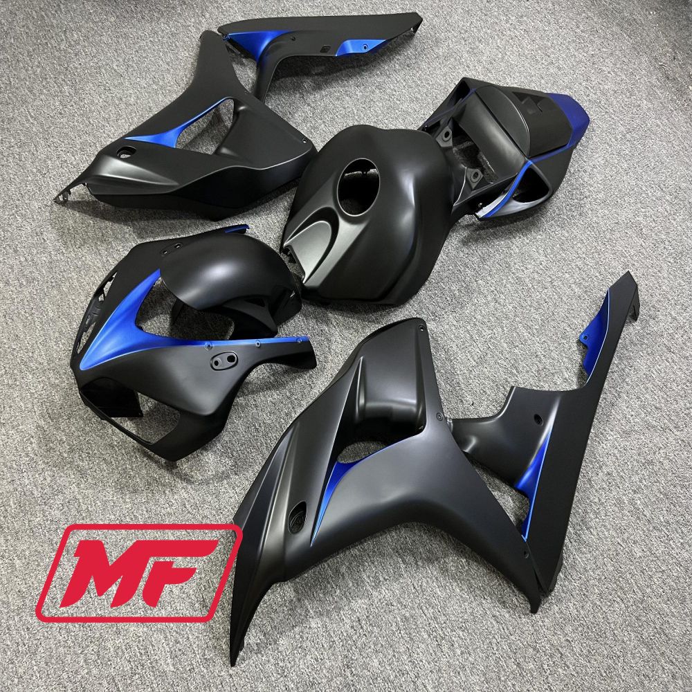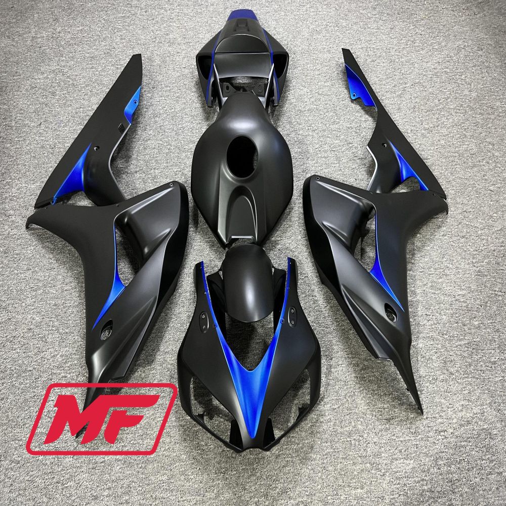 Monster Fairings Full Kit Honda CBR1000RR 06-07 Matte Black w/ Blue + Windshield + Gas Tank Cover
