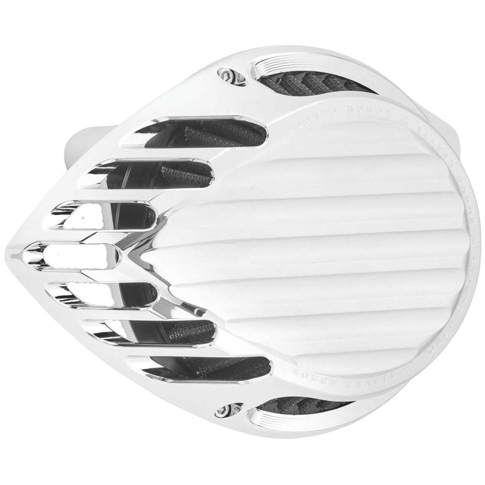 - Each Rough Crafts Finned Air Cleaner features a hidden breather that is O-ringed at the heads, passes through the backing plate and exits at the mouth of the throttle body through proprietary shooter tubes. This eliminates the need for any external hoses or hardware.