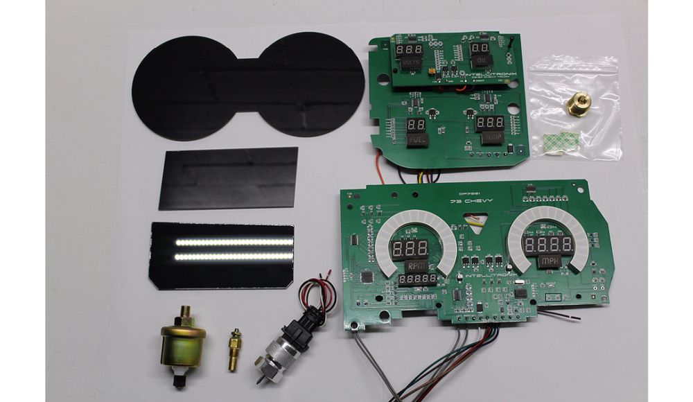 The 1973-87 Chevy Truck has the look and feel of elegance and will make you the envy of all Chevy truck lovers with your new 73-87 Chevy Truck LED Digital Replacement Gauge Panel by Intellitronix. Complete with direct fit printed circuit boards, custom fit smoked plexiglass faceplate, universal temperature, oil pressure, and speedometer sending units with sender and sensor for vehicles without electronic transmission or cruise control, and instructions for installation.Brand: Intellitronix