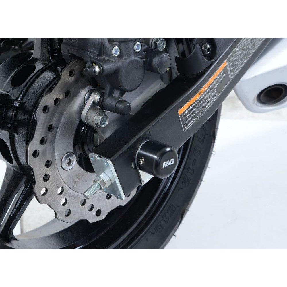 The R&G swingarm protectors provide protection for vulnerable rear end components in the event of a crash, drop or slide. Replaceable High-Density Polyethylene (HDPE) bobbins are used for superior impact and abrasion protection that helps slow the motorcycle to a smooth, controlled stop. This essential protector will keep valuable components off the ground to prevent some seriously expensive repairs after a fall. Installation is simple with no permanent modification to the bike needed.