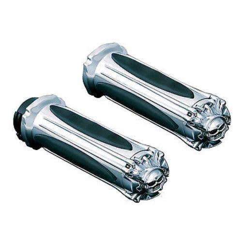 Kuryakyn Chrome Zombie Skull Hand Grips Throttle By Cable Pair Set Harley 82-17