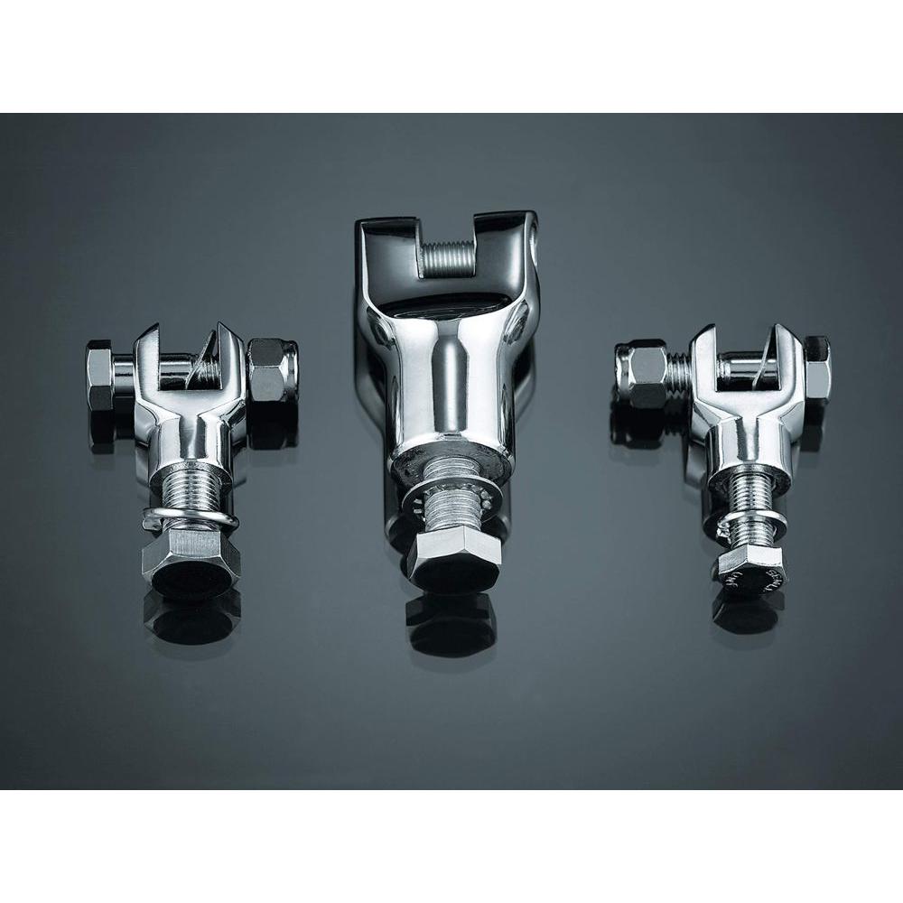 - The Kuryakyn 8015 motorcycle footpeg mounting accessory allows you to customize your motorycle with desired footpegs. Ideal for custom footpeg installation or for use as a replacement piece. Durable designed with a chrome finish, providing a cohesive look to your ride. Includes (2) peg mount clevises with 1/2"-20 mount bolts. The Kuryakyn 8015 motorcycle footpeg mounting accessory is universal fit for 1/2" bolt through 1/2" hole mounting on typical male mount cruise peg applications; accepts any Harley-Davidson style male mount peg.