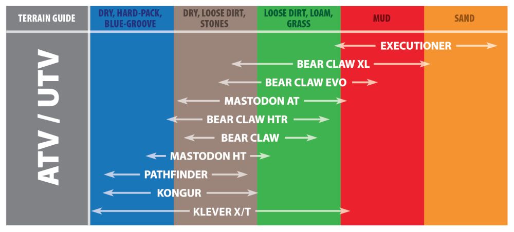 - Aggressive, open tread design excells in clean-out performance in mud.