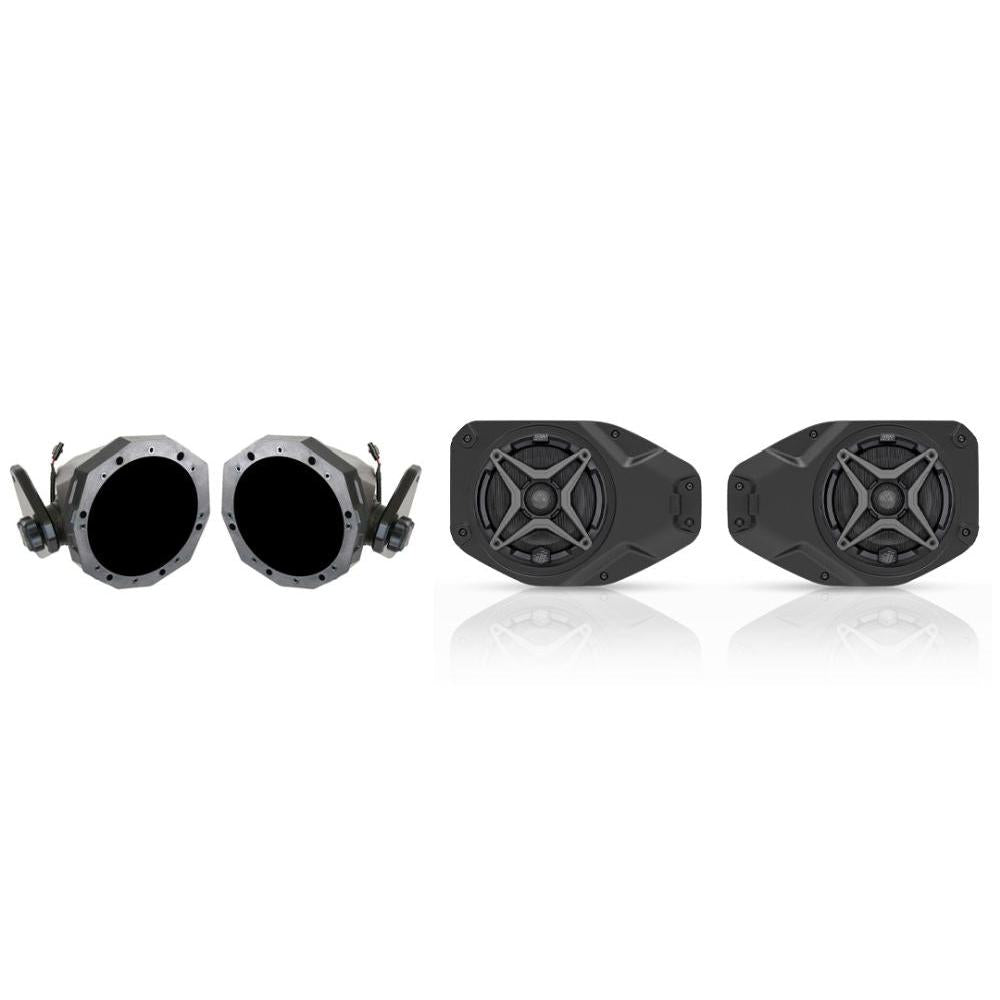 SSV Works Cage Mounted 6.5" Unloaded Speaker Pods W/ Overhead Unloaded 6.5" Speaker Adapters For Jeep Wrangler 18-22
