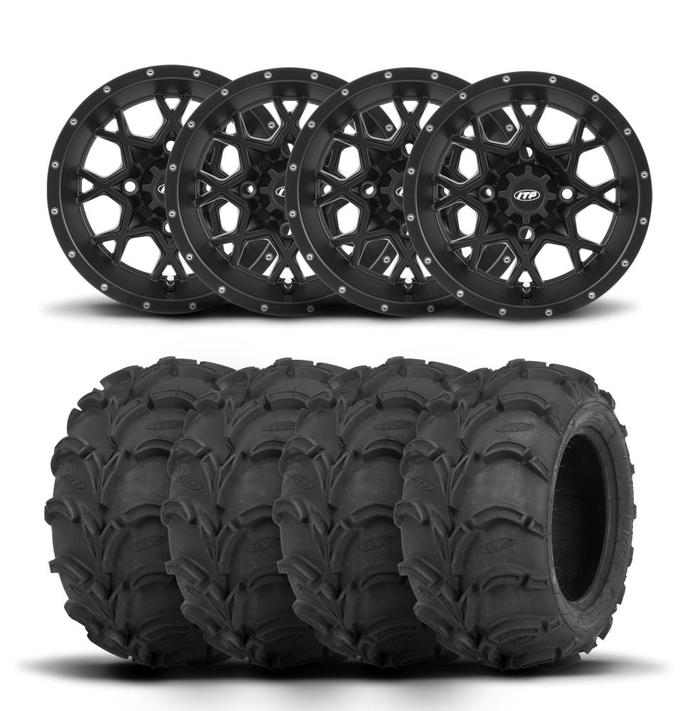 ITP Hurricane 12" Matte Black Wheels And Mud Lite Tires [30x12-12]
