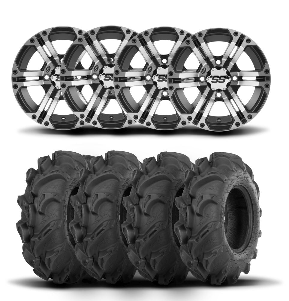 ITP SS212 12" Machined Black Wheels And Mega Mayhem Tires [28x9-12]