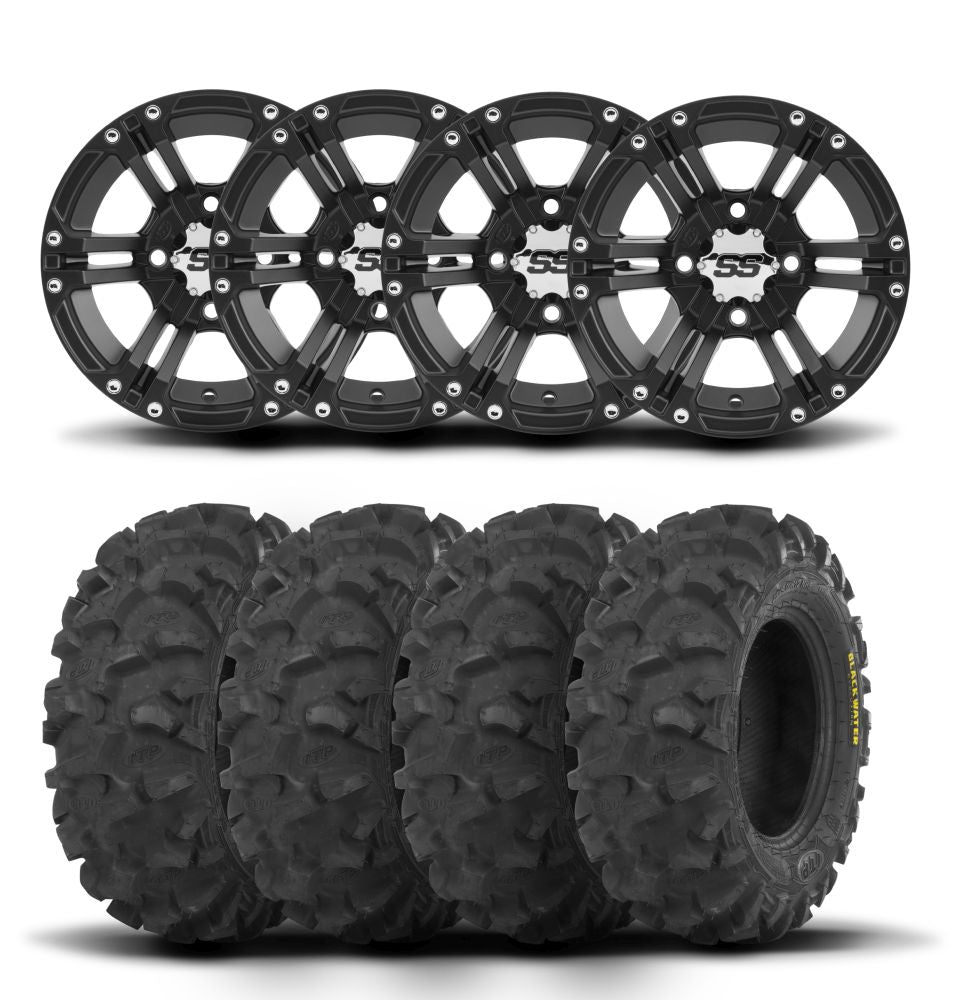 ITP SS212 12" Matte Black Wheels And Blackwater Evolution Tires [26x9-12]