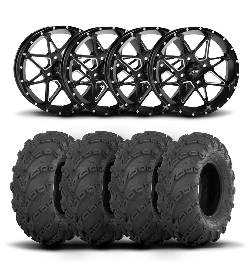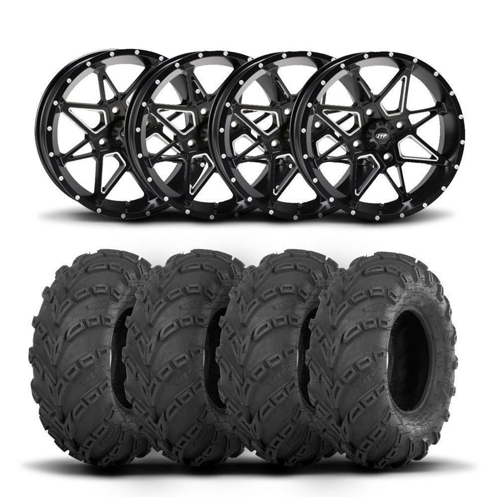ITP Tornado 14" Matte Black Wheels And Mud Lite Tires [27x10-14]
