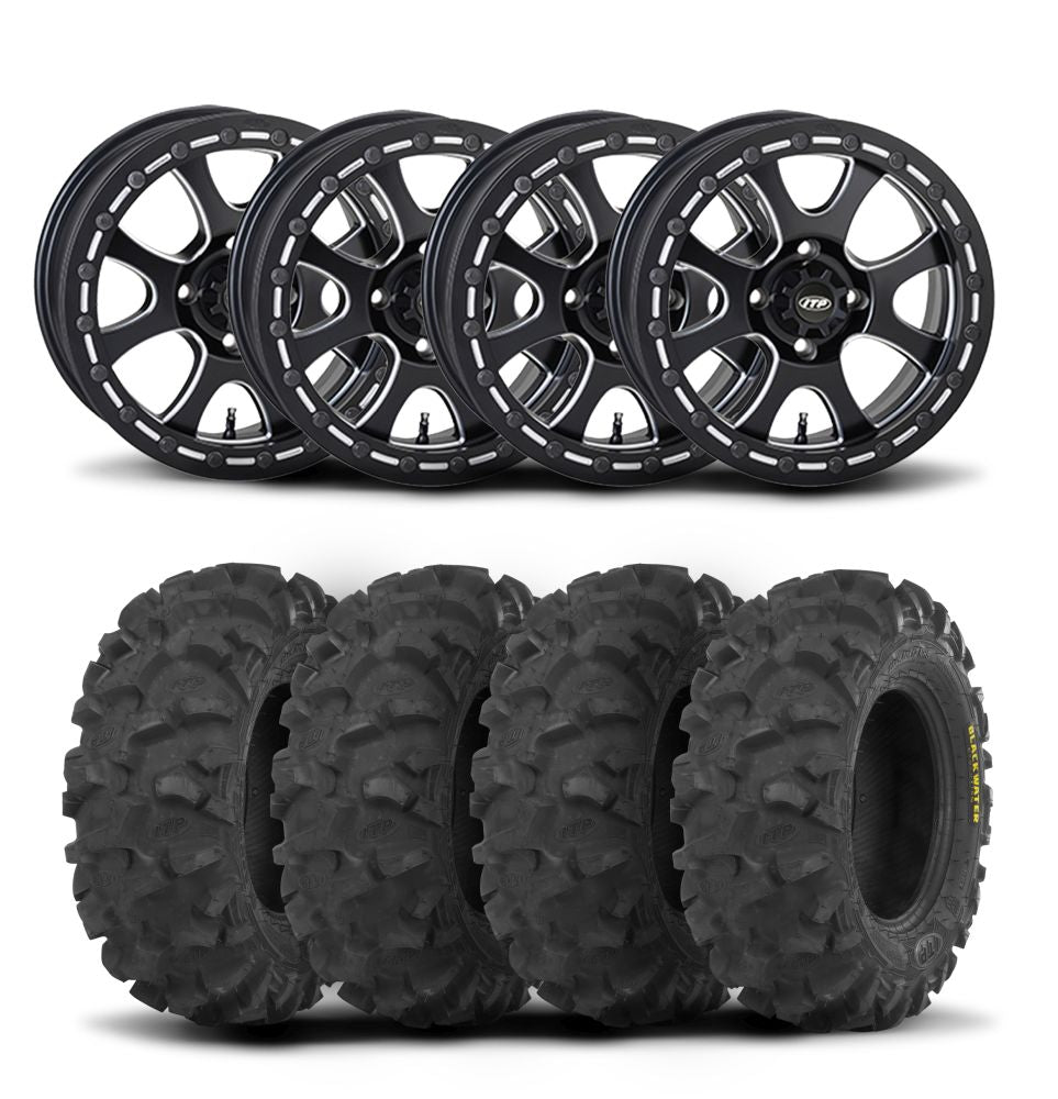 ITP Tsunami 15" Matte Black Wheels And Blackwater Evolution Tires [32x10-15]