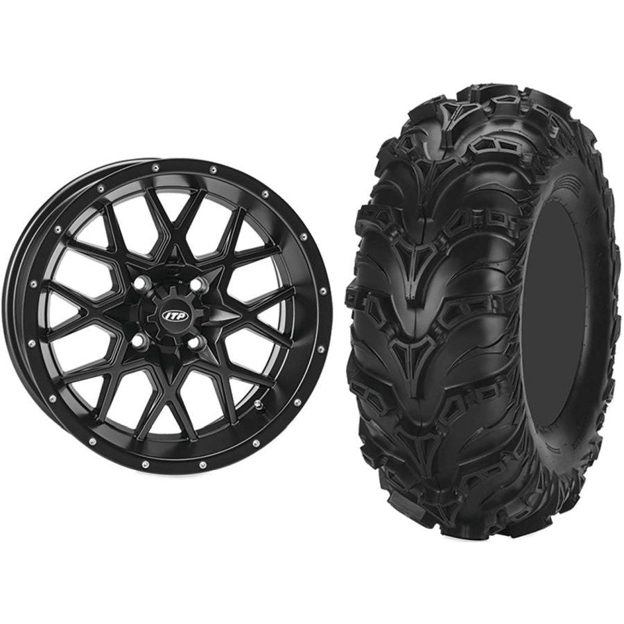 Set of 2 Mounted Wheel and Tire Kit Wheel: 12x7 2+5 4/110 Tire: 25x10-12 6 Ply