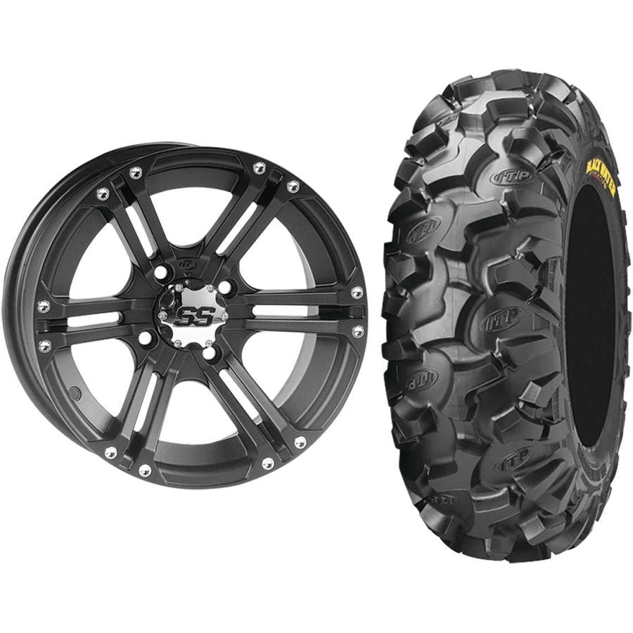 Set of 2 Mounted Wheel and Tire Kit Wheel: 12x7 5+2 4/110 Tire: 26x11-12 8 Ply