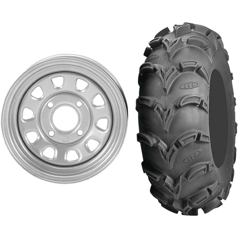 Set of 2 Mounted Wheel and Tire Kit Wheel: 12x7 5+2 4/137 12mm Tire: 26x9-12 6 Ply