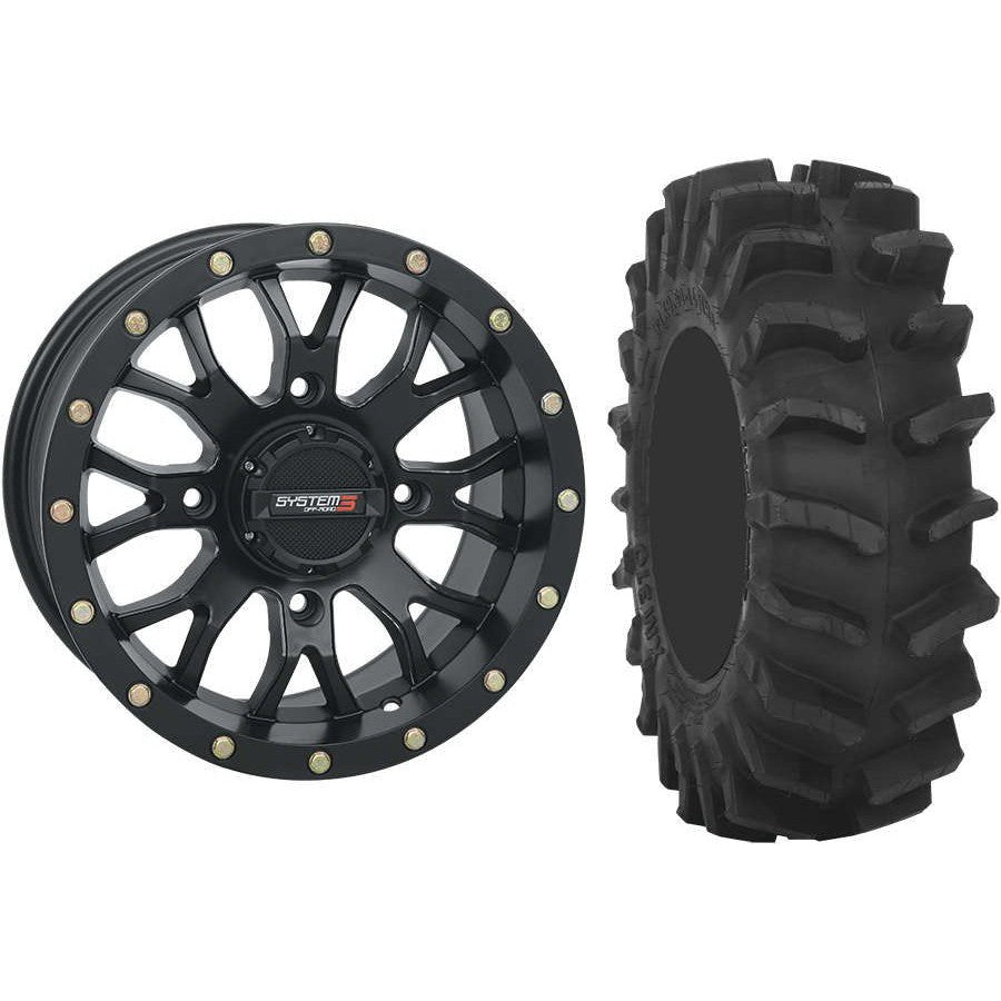 Set of 2 Mounted Wheel and Tire Kit Wheel: 14x7 5+2 4/110 Tire: 28x9.5-14 8 Ply